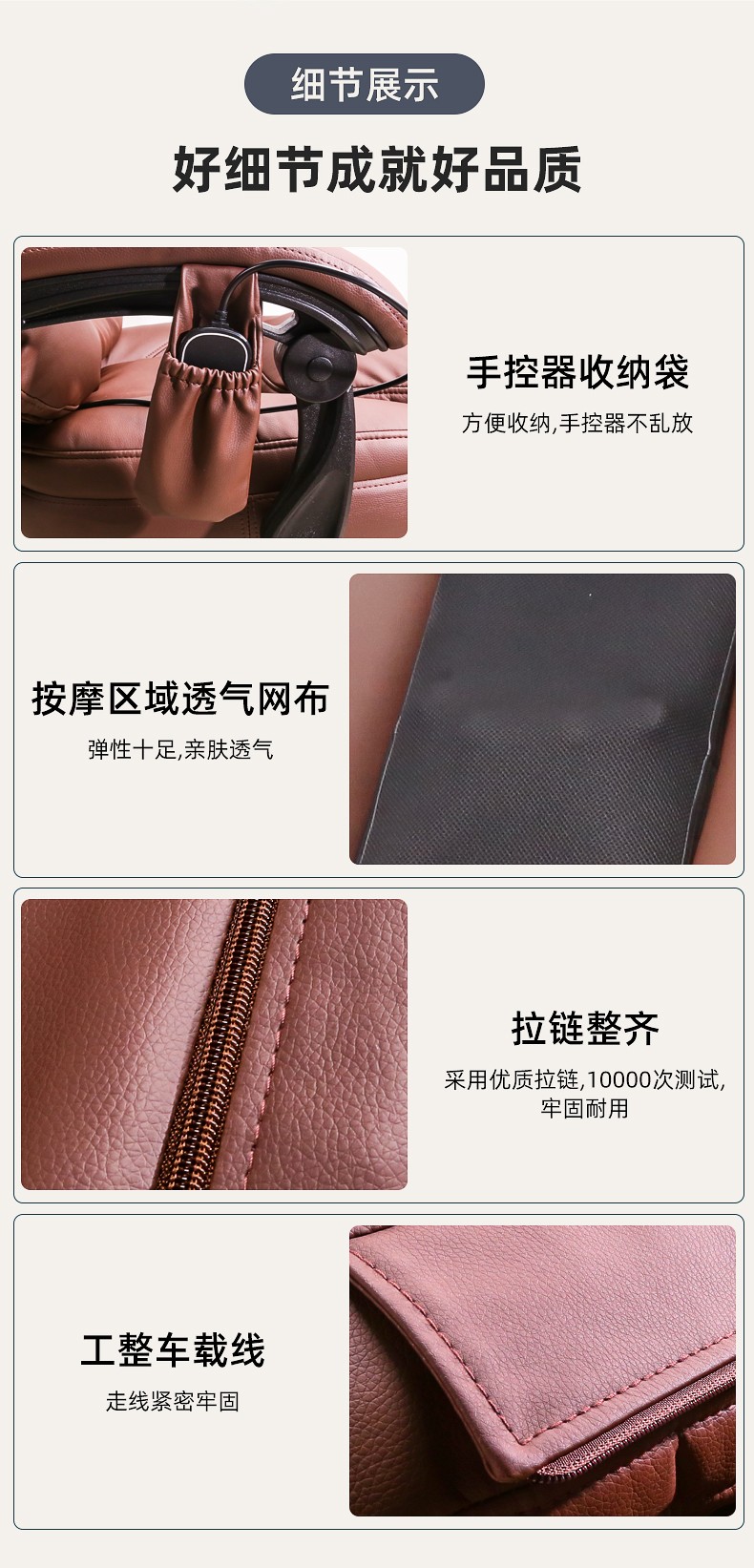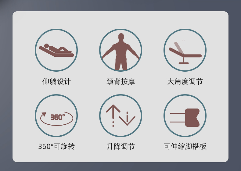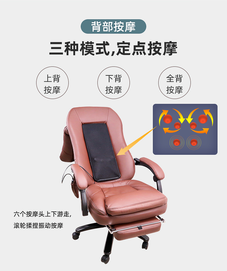 辦公按摩椅頸部:正反轉(zhuǎn)揉捏,上下可調(diào)節(jié)高矮適應(yīng)不同人。