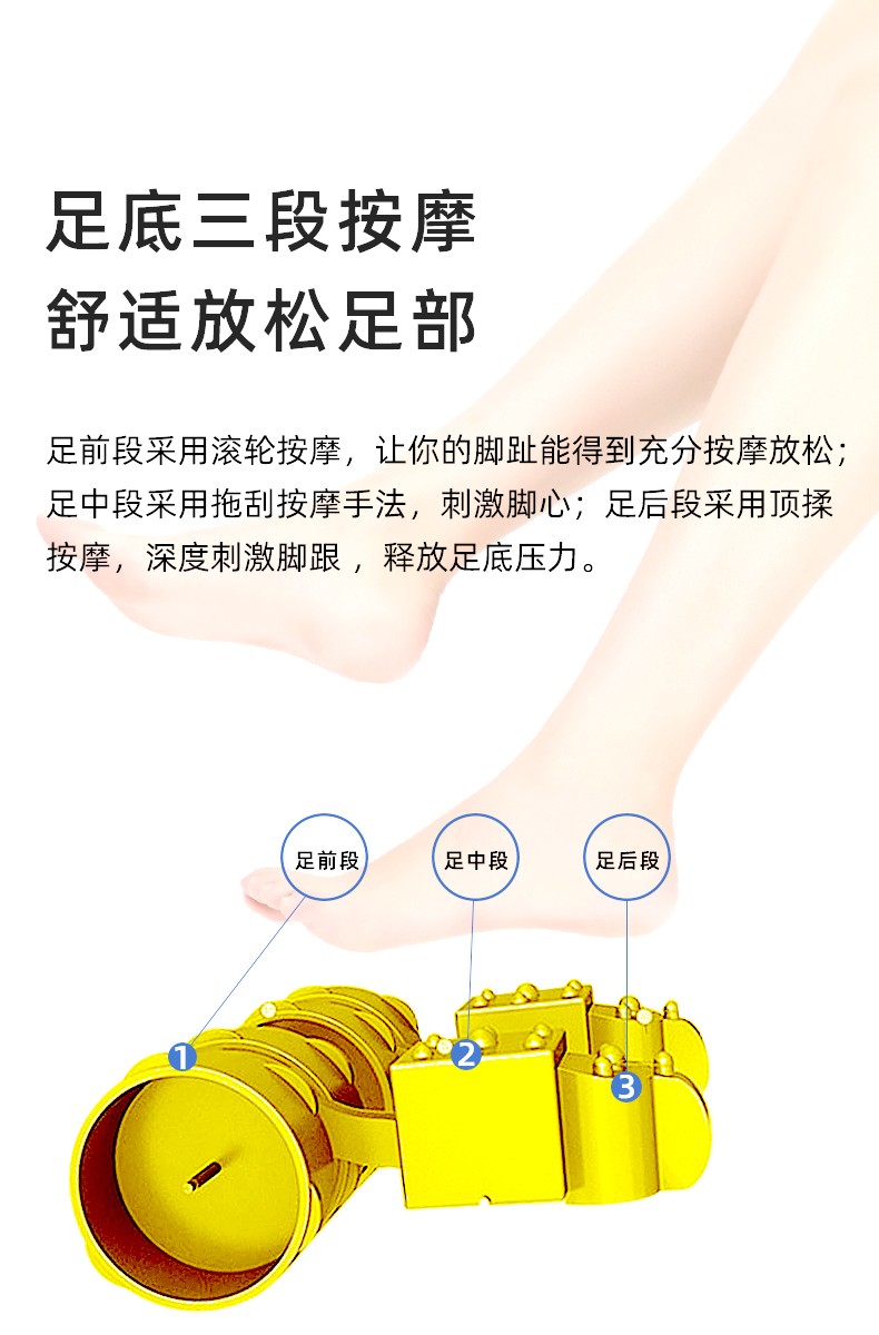 腳底 滾輪按壓(腳趾)、刮痧(腳底)、頂(腳后跟)按摩 (多模式,多強度)