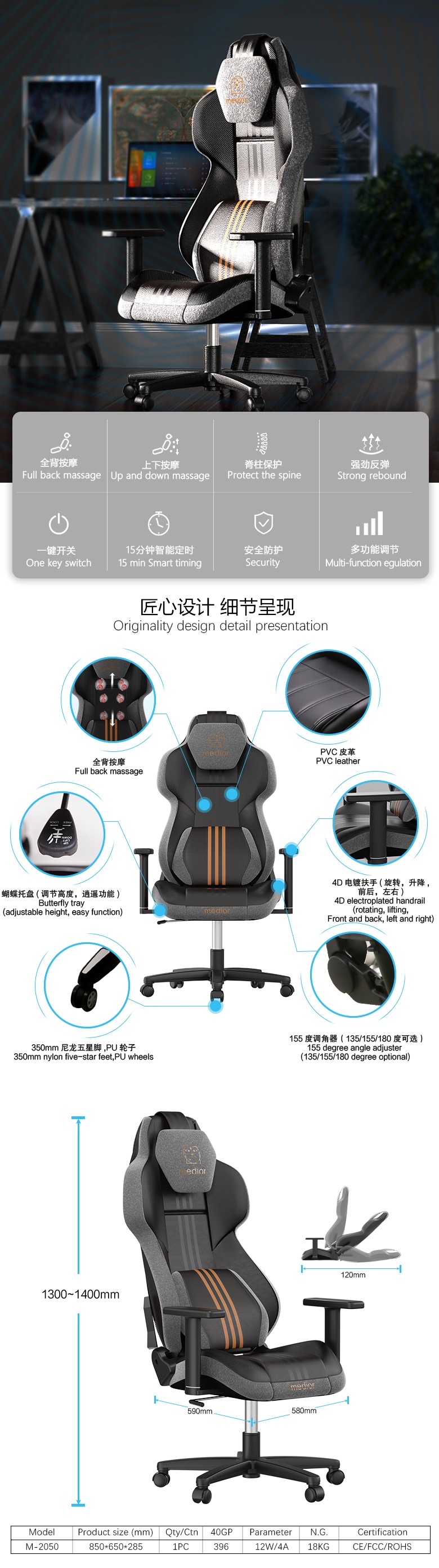 1) 頸部揉捏按摩,上下移動調(diào)節(jié)