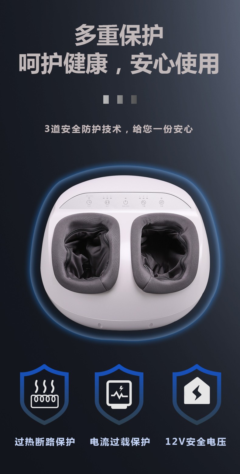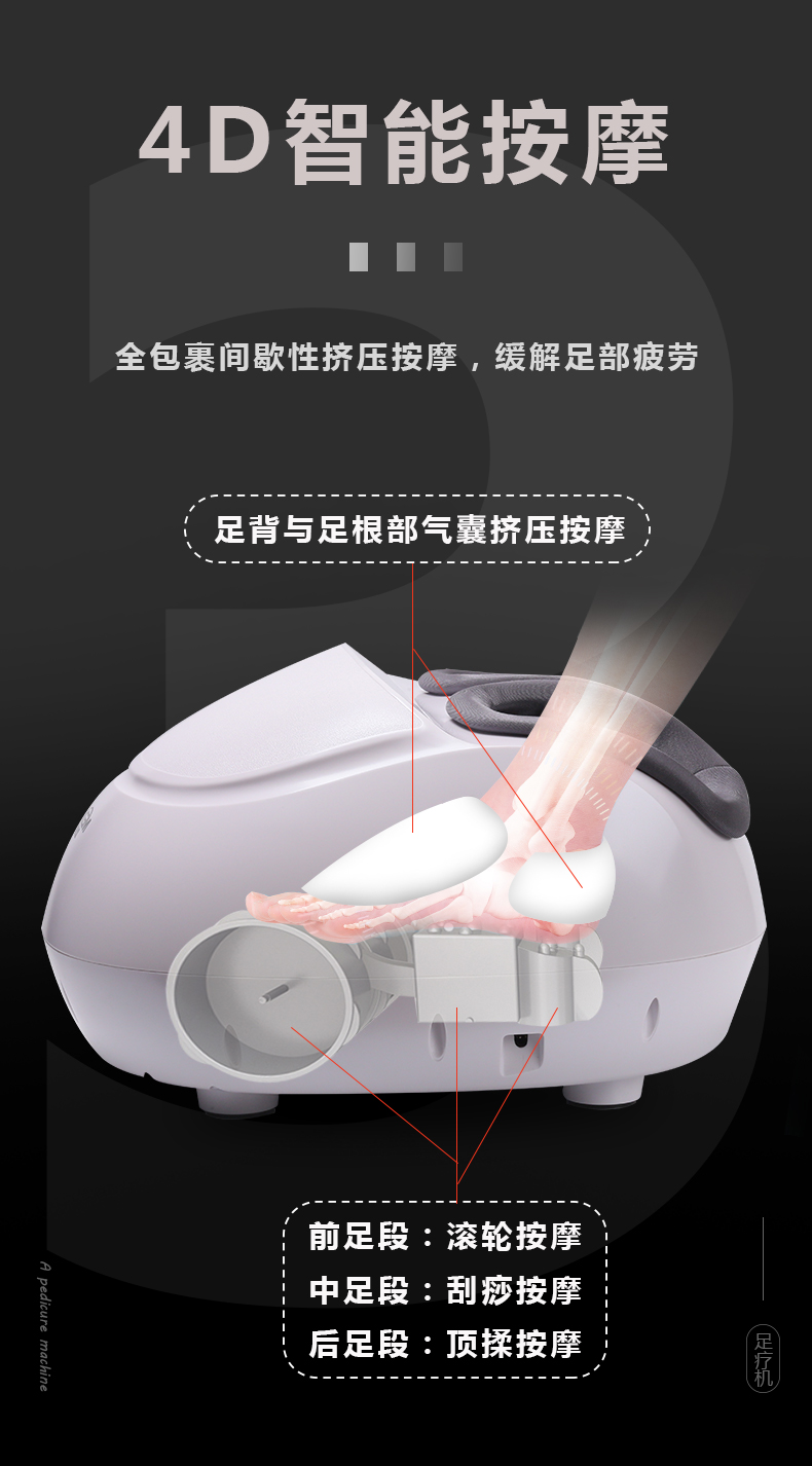 底壓機(腳趾),刮板(鞋底),Shiatus(腳跟)按摩(多模式,多強度)