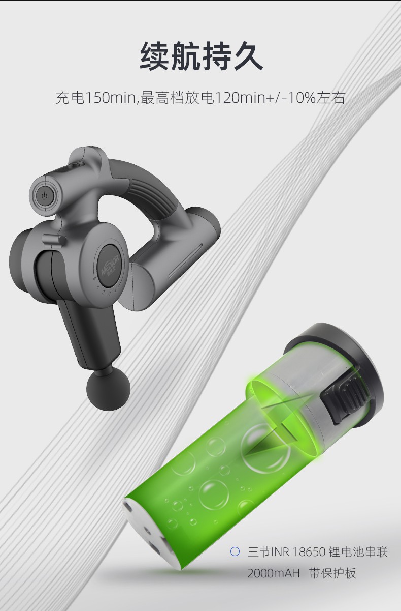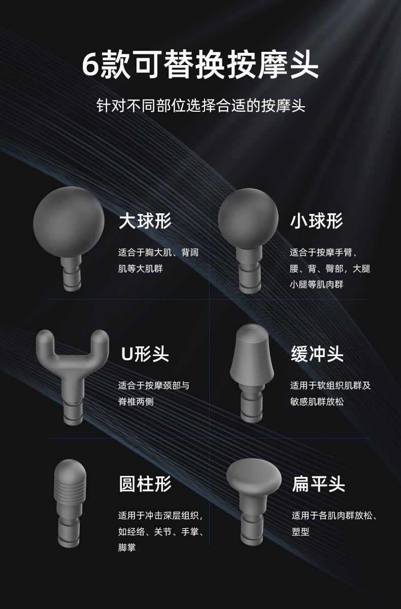 5個(gè)按摩頭和4個(gè)速度:每分鐘500-2500次