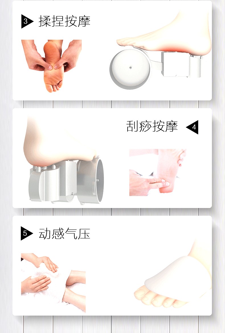 空氣壓縮腳底按摩器腳底壓腳板,腳掌刮擦,椎板(腳跟)按摩(多模式,多強度)