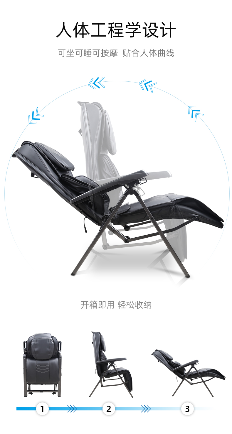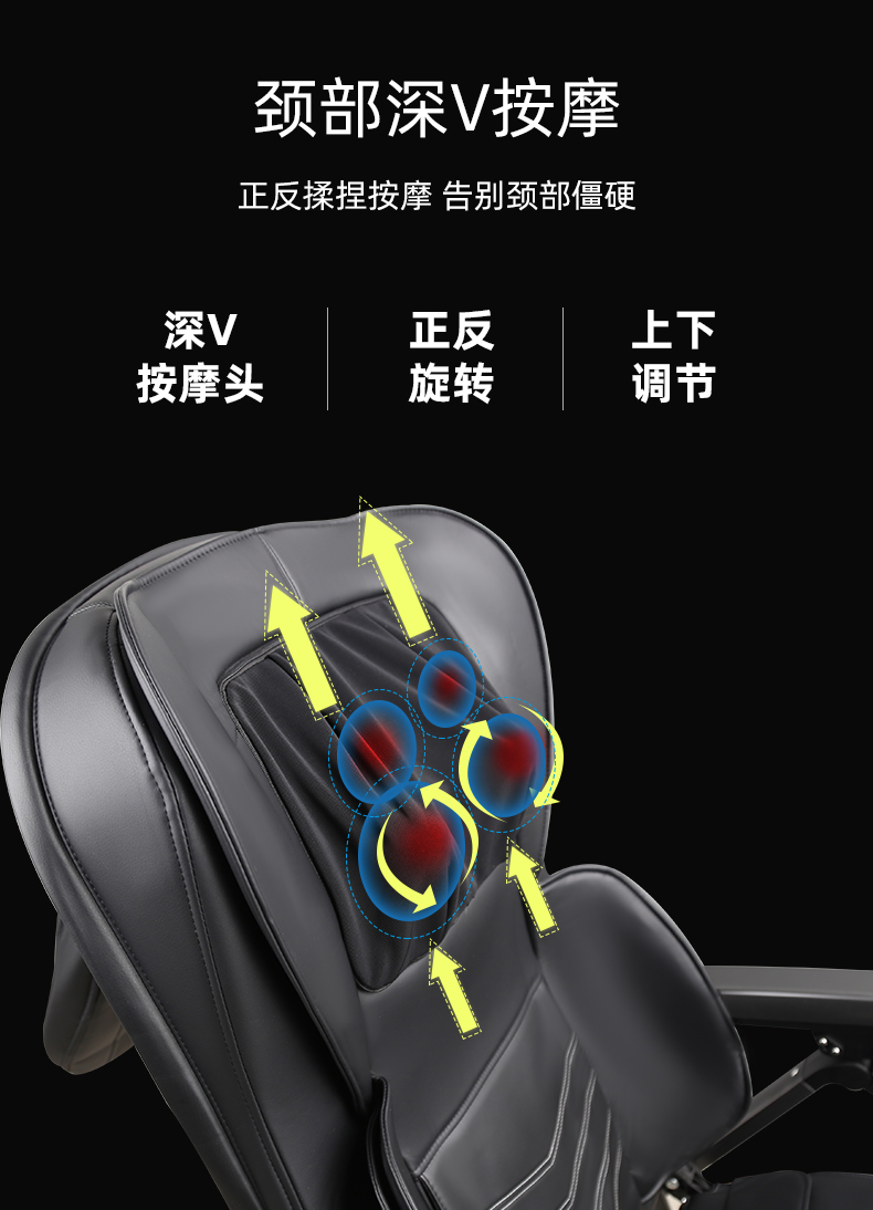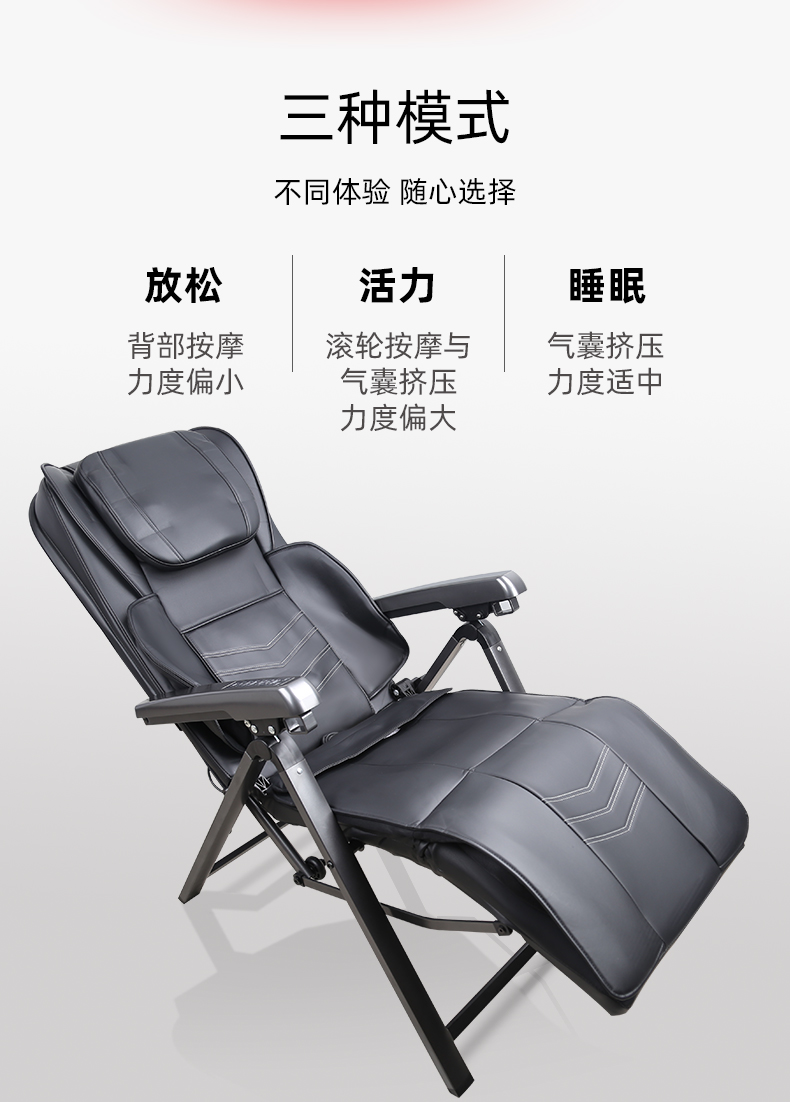 折疊式按摩椅1.頸部:創新壓肩按摩,正反轉揉捏,上下可調節高矮適應不同人。